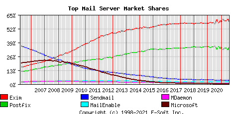 Exim(58%)、Postfix(35%)、Sendmail(4%)